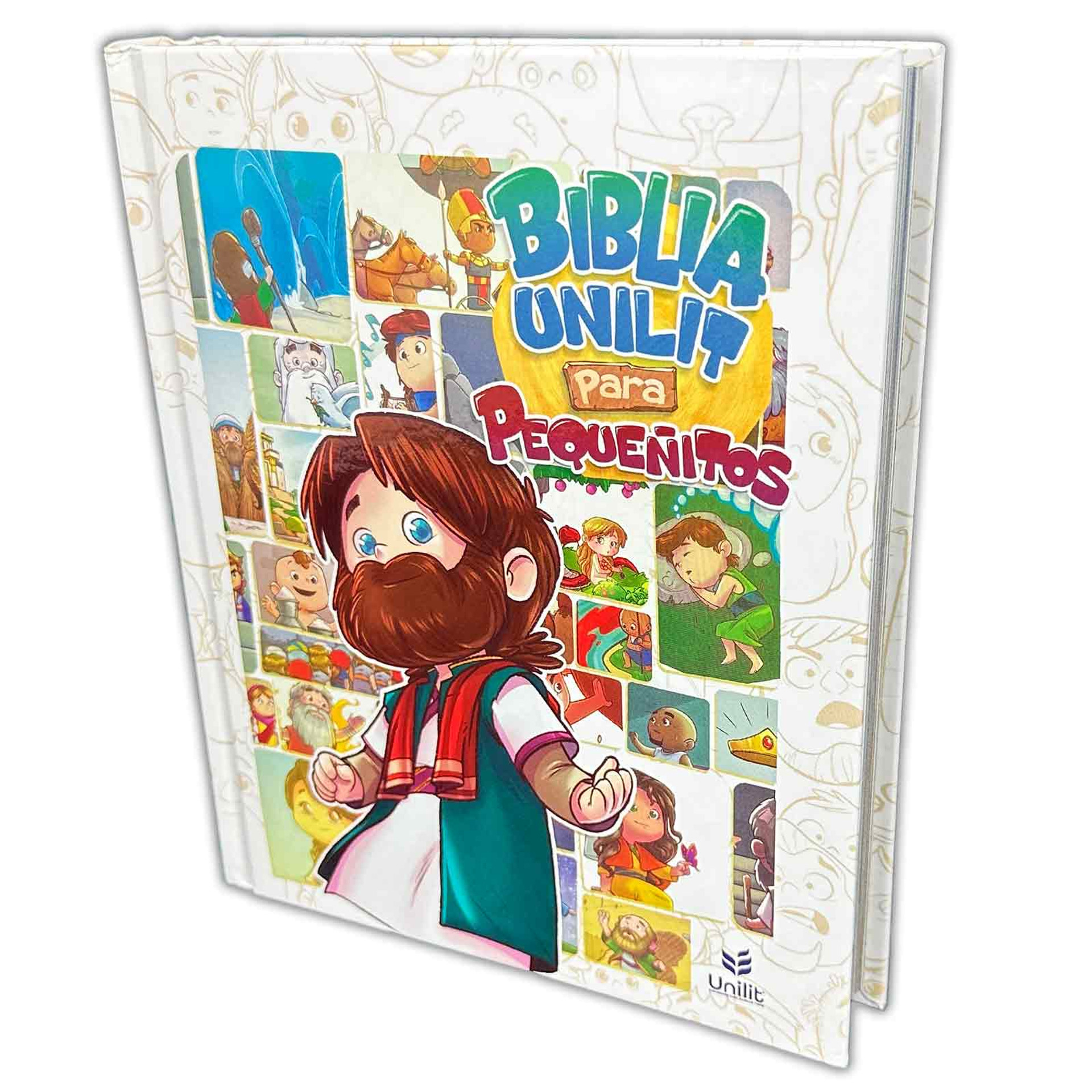 La nueva versión Biblia Unilit para pequeñitos relata las grandes historias de la Biblia en un vocabulario adaptado para los niños. Con veintidós historias del Antiguo Testamento y cuarenta y cuatro del Nuevo Testamento, esta Biblia está repleta de bellas ilustraciones a todo color para que los niños disfruten y aprendan.
